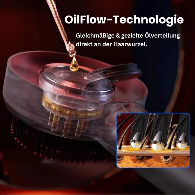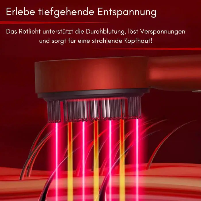 Der Kamm kombiniert sanfte Vibrationen, die die Durchblutung der Kopfhaut fördern, mit Rotlichttherapie (ca. 650 nm), welche die Zellaktivität an der Haarwurzel stimuliert. Diese Kombination aktiviert Haarfollikel, verlängert die Wachstumsphase (Anagenphase) und kann so das Haarwachstum sichtbar fördern.